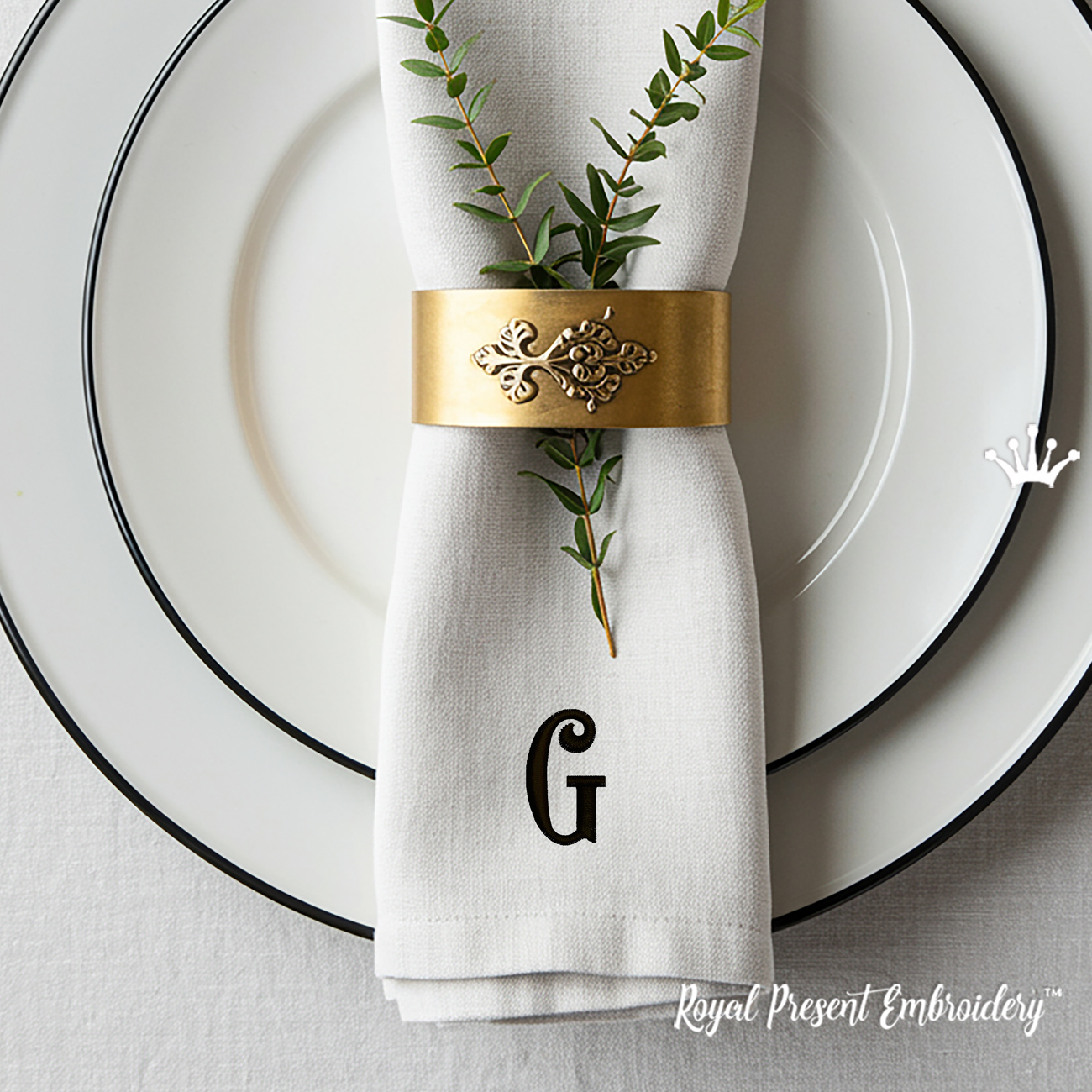 For best results, secure the fabric firmly on a stabilizer and use temporary spray adhesive to prevent shifting during embroidery, especially on lightweight fabrics. This design has a companion, Capital Letter G Embroidery Design V3, allowing you to create a coordinated and consistent monogram set for matching projects.