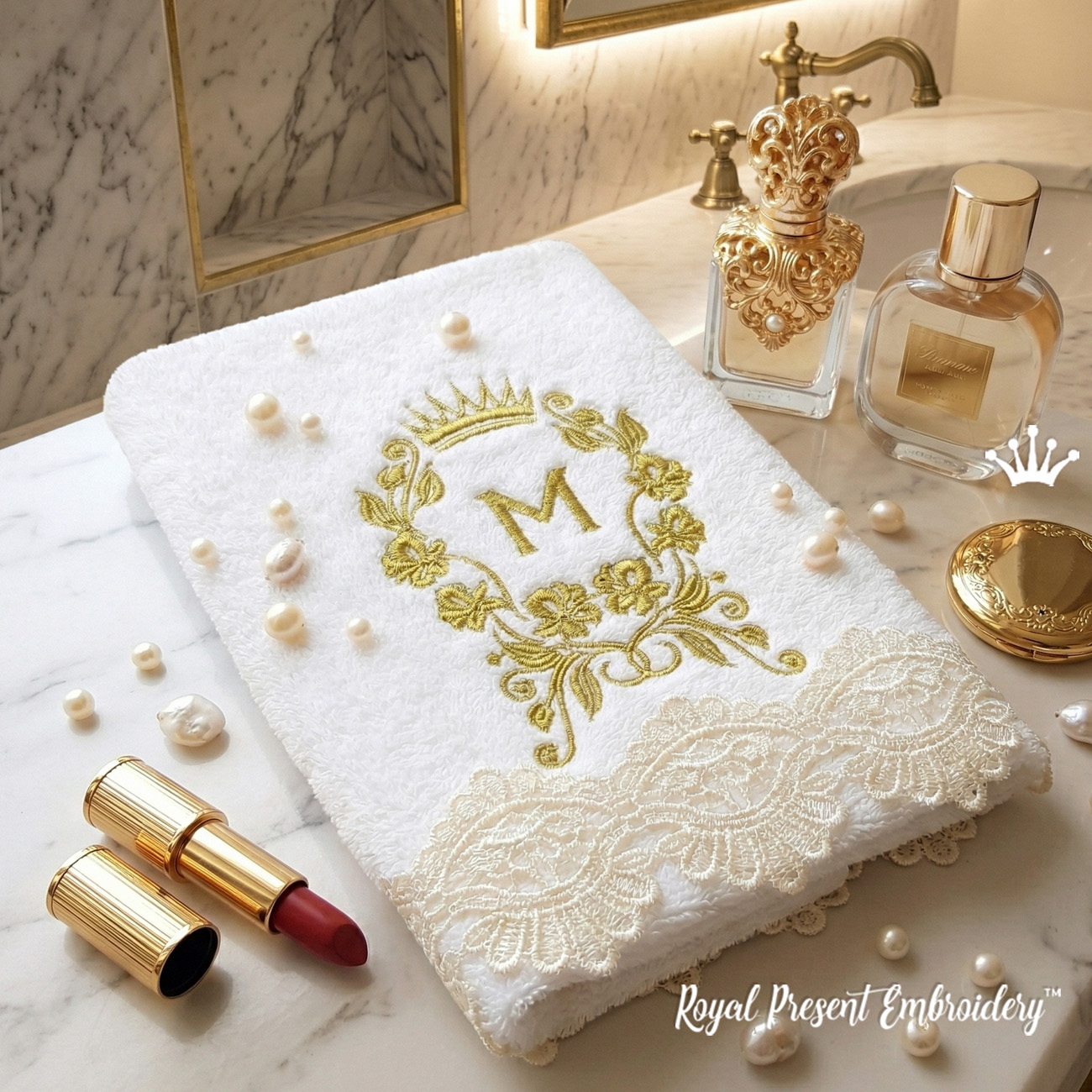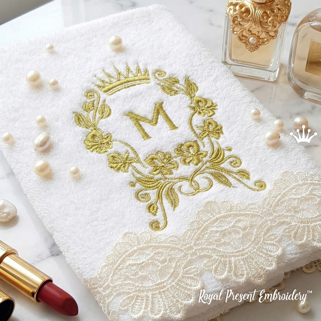 Floral Graceful Frame Machine Embroidery Design is an elegant choice for anyone looking for a floral monogram frame for machine embroidery, a decorative embroidery frame with flowers, or a beautiful design for embroidered initials and personalized monograms. This graceful frame features soft floral details and flowing ornamental lines, making it perfect for towels, napkins, linens, robes, pillowcases, wedding accessories, and gift embroidery. Its refined style adds a feminine, classic, and timeless touch to custom embroidery projects, whether you are creating a monogram for home décor or a personalized gift.