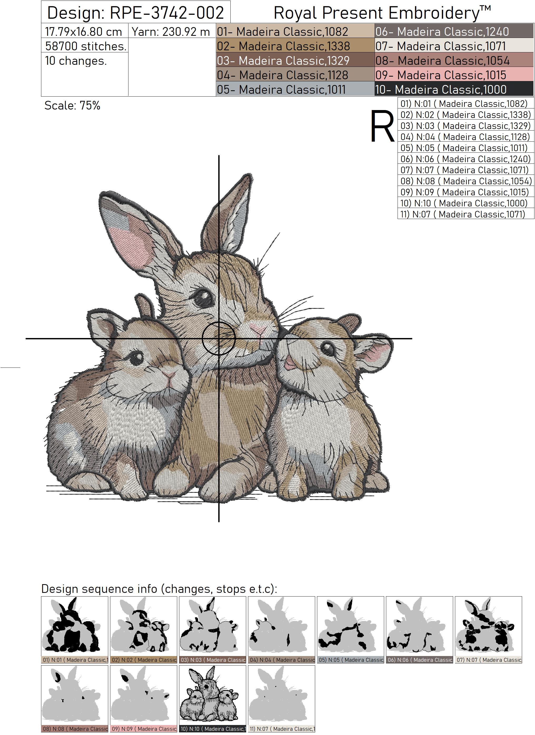 A smaller size version is also available as Mama Bunny and the Bunnies embroidery design, perfect for more compact projects and smaller hoops.