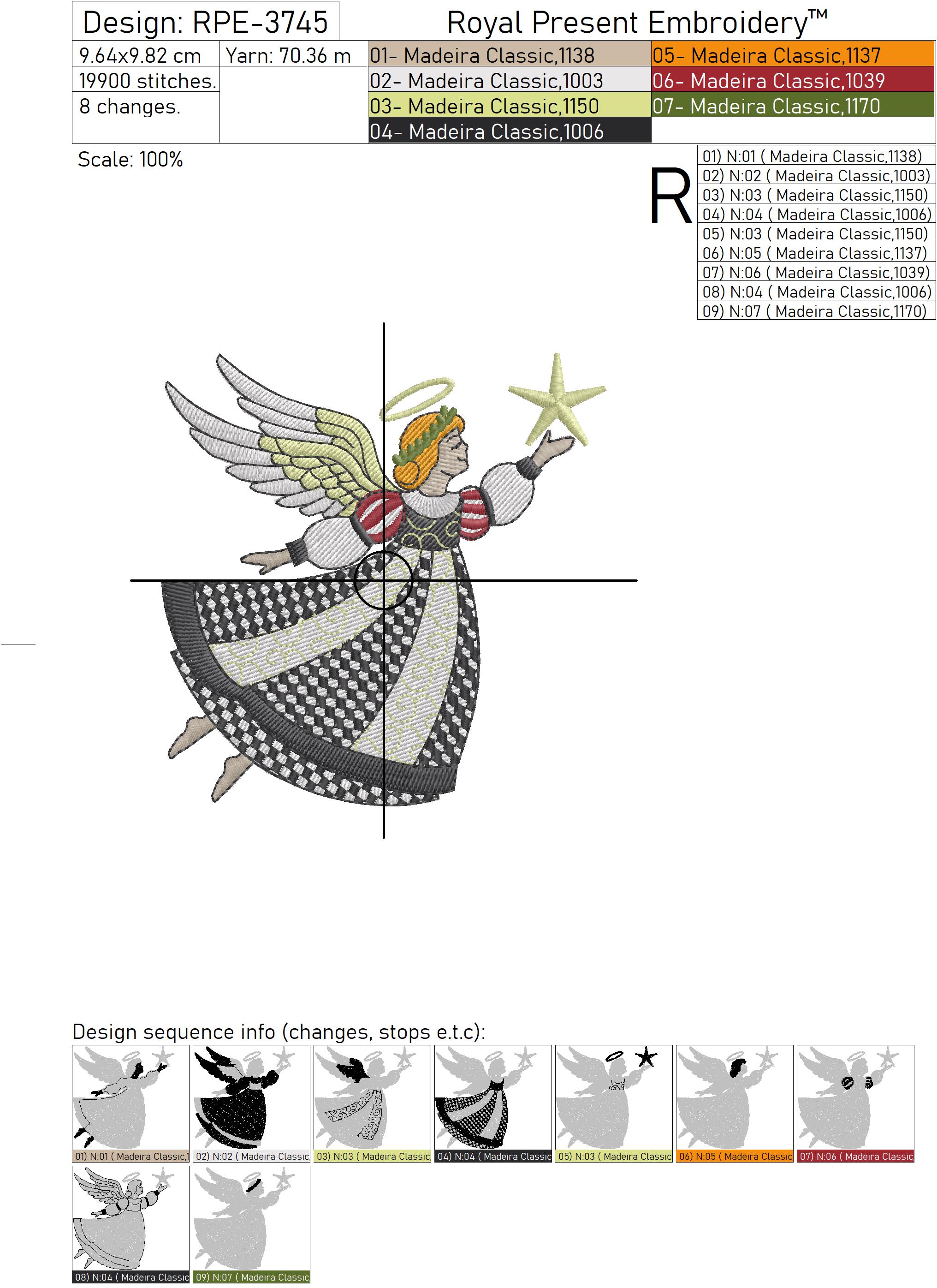 This Checkered Christmas Angel with Star machine embroidery design will become a treasured addition to your collection — a blend of tradition and charm to inspire your next creative project.