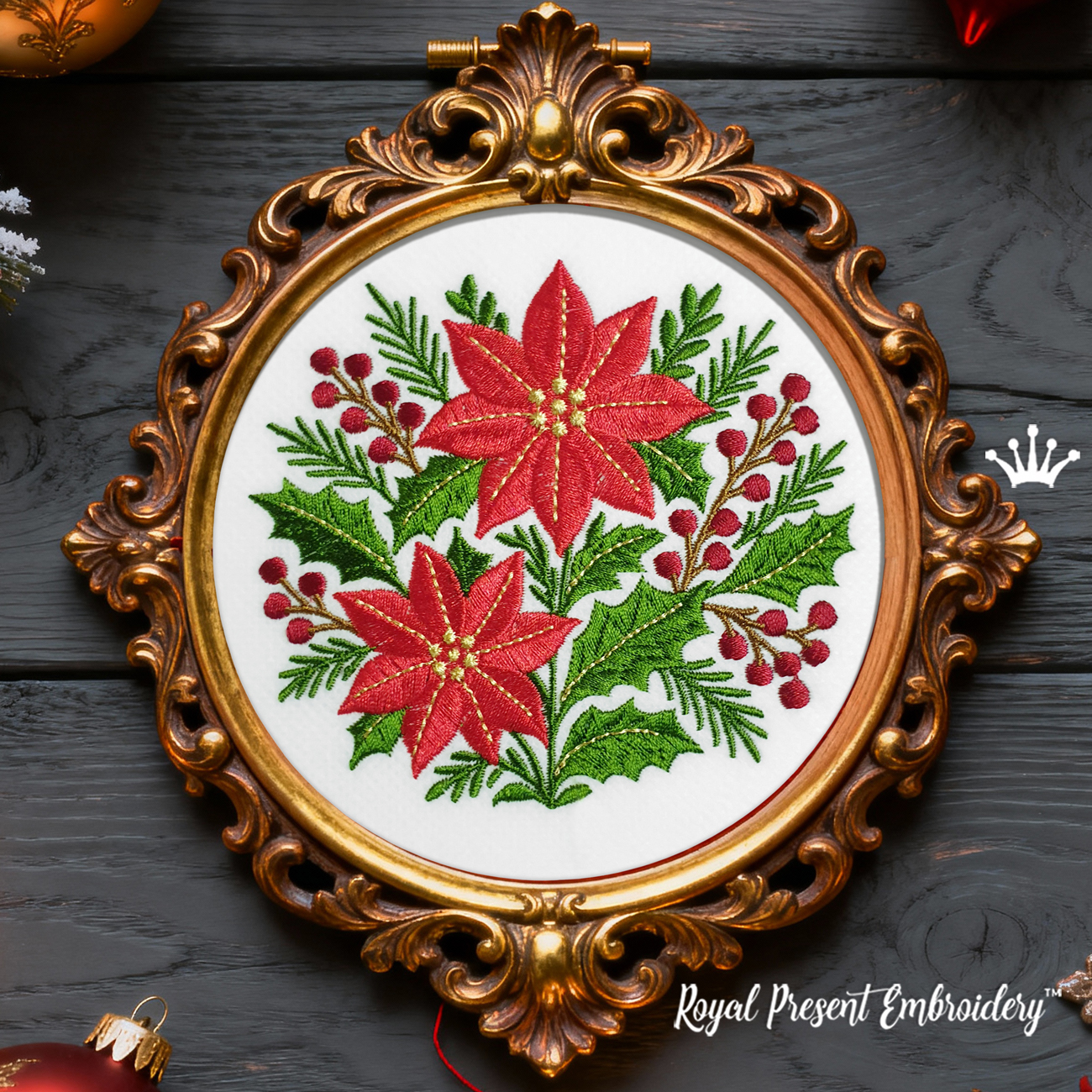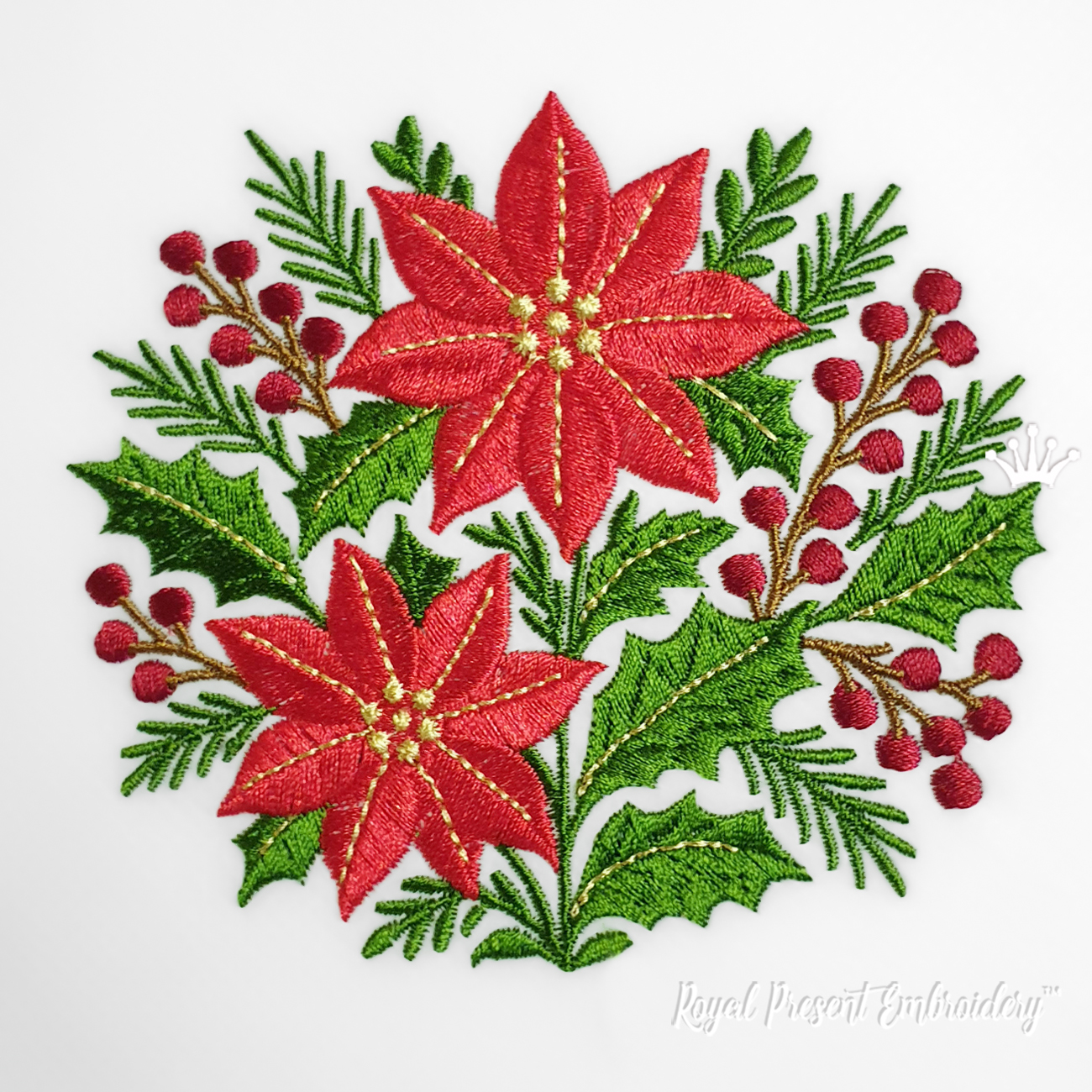 Poinsettia Garland Machine Embroidery Design – 2 sizes