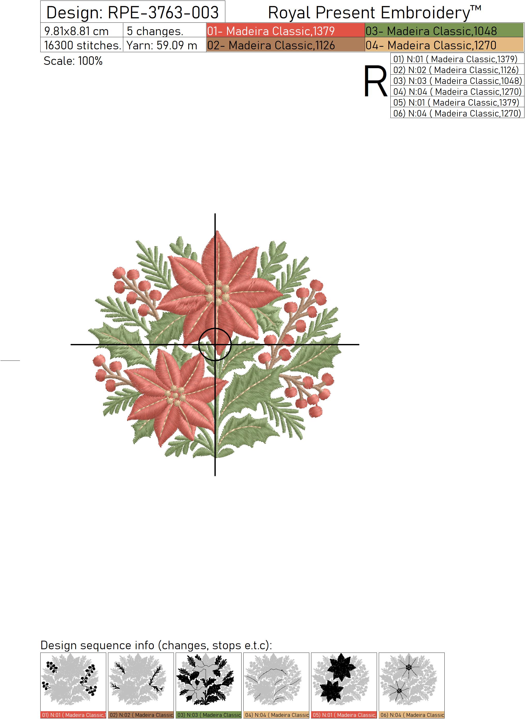 This elegant Christmas Poinsettia for Napkins Small machine embroidery design is created especially for refined holiday table décor. The design features a classic poinsettia flower — a timeless symbol of Christmas — rendered in a delicate, compact size ideal for napkins and small textile accents. Its style combines classic Christmas elegance with a subtle vintage touch, making it perfect for festive table settings.