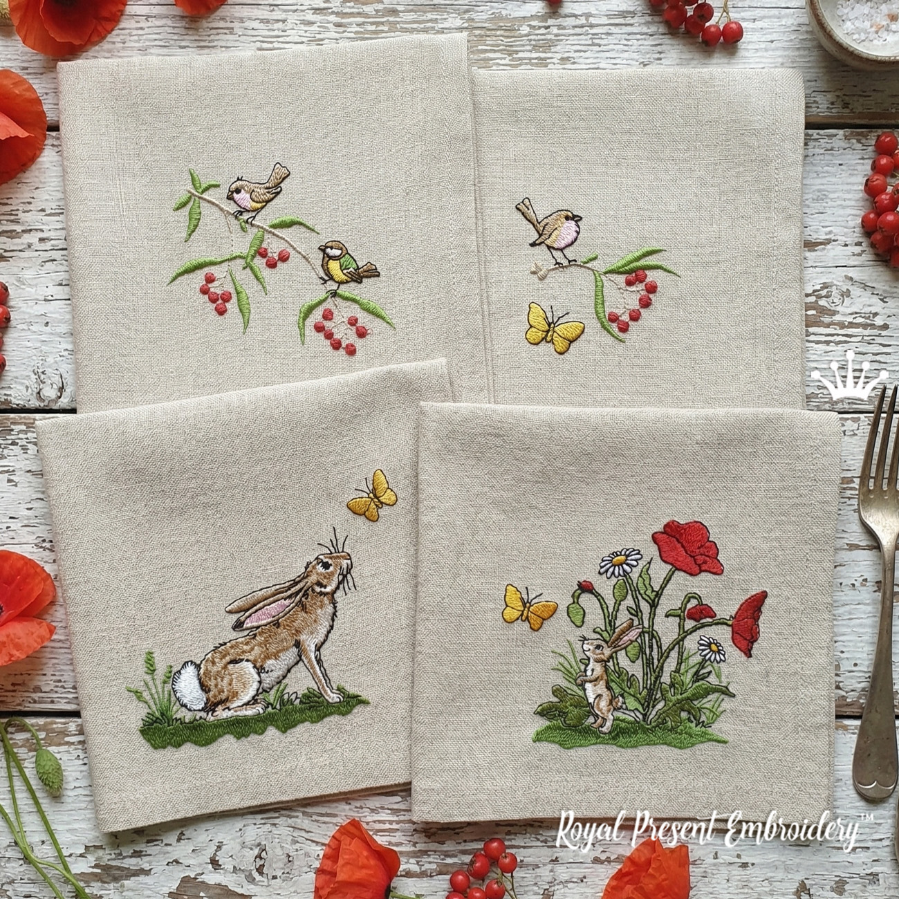Bring the enchanting beauty of a woodland meadow to your creative projects! Transform your home decor, linens, and apparel with our premium Detailed Hares, Birds & Poppies Embroidery Bundle. Perfect for nature lovers and craft enthusiasts, this high-quality set includes four exquisite, highly detailed machine embroidery designs. Whether you are creating rustic table napkins, cozy cushions, or personalized gifts, these realistic woodland and botanical motifs will make your projects truly stand out.