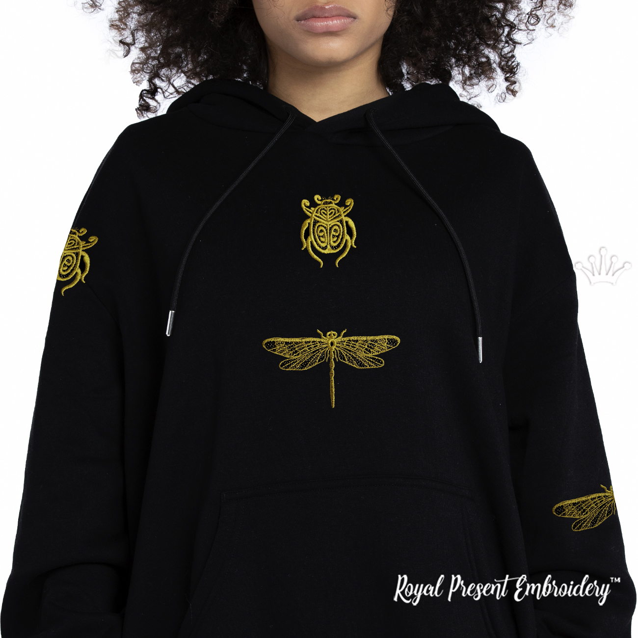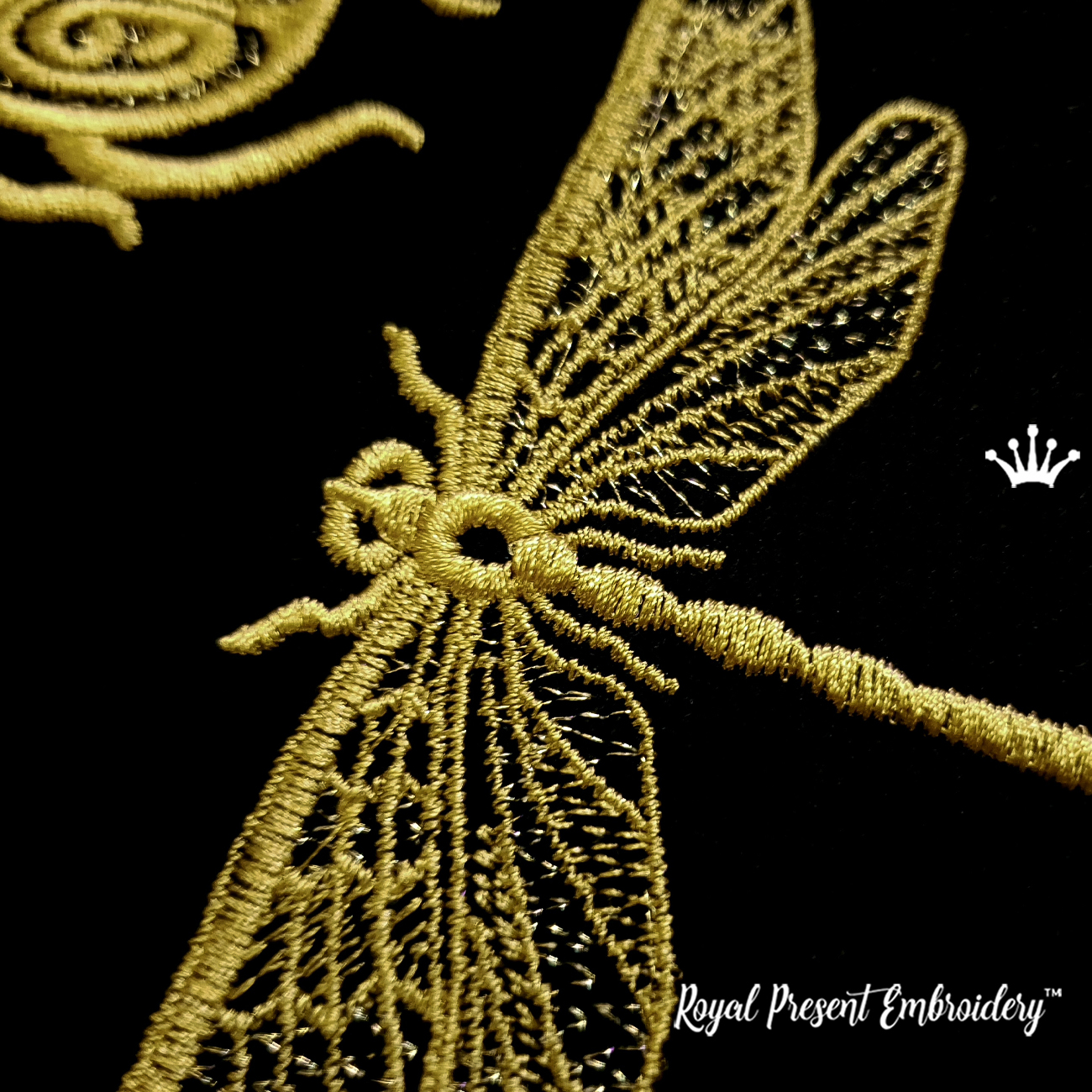 Add an elegant touch of nature to your projects with the Dragonfly and Beetle Set — a refined machine embroidery design in a vintage lace style. This delicate duo captures the intricate beauty of insect wings and ornate patterns in a golden thread look, making it a perfect choice for classic and luxurious embroidery work.