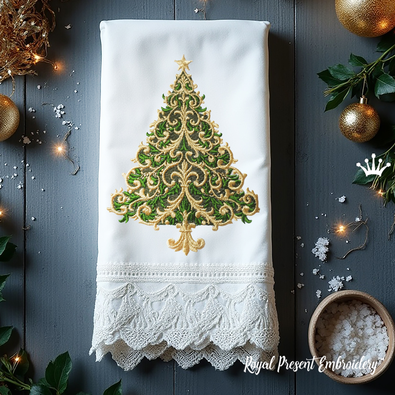 Wrap your holiday creations in elegance with this timeless machine embroidery design. The Elegant Baroque Christmas Tree is more than just a decoration — it's an artistic expression that will inspire your festive creativity for years to come. There is a companion to the Royal Baroque Style Christmas Tree machine embroidery design.