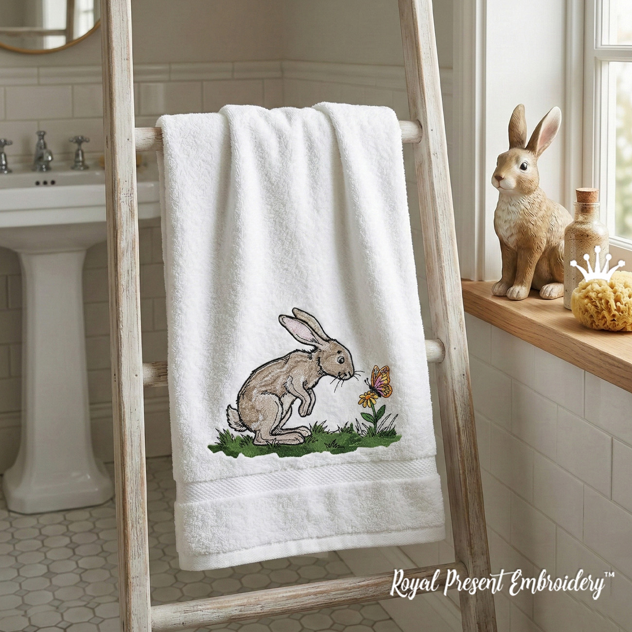 This realistic hare machine embroidery design features a detailed bunny with a delicate flower and butterfly, perfect for spring and Easter projects. If you are searching for bunny embroidery design, hare embroidery file download, Easter rabbit machine embroidery pattern, spring floral embroidery design, or realistic animal embroidery for pillows and towels, this design is exactly what you need.