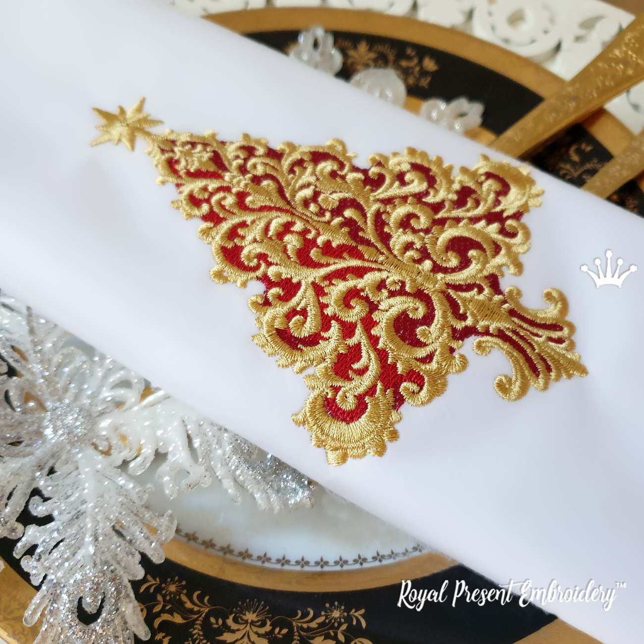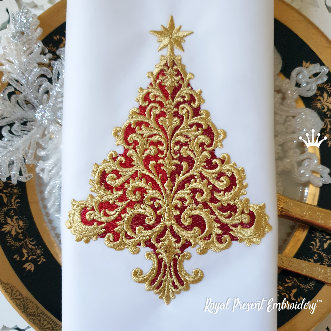 This piece pairs beautifully with our Small Baroque Christmas Tree machine embroidery design — perfect for coordinated sets or layered holiday decor.