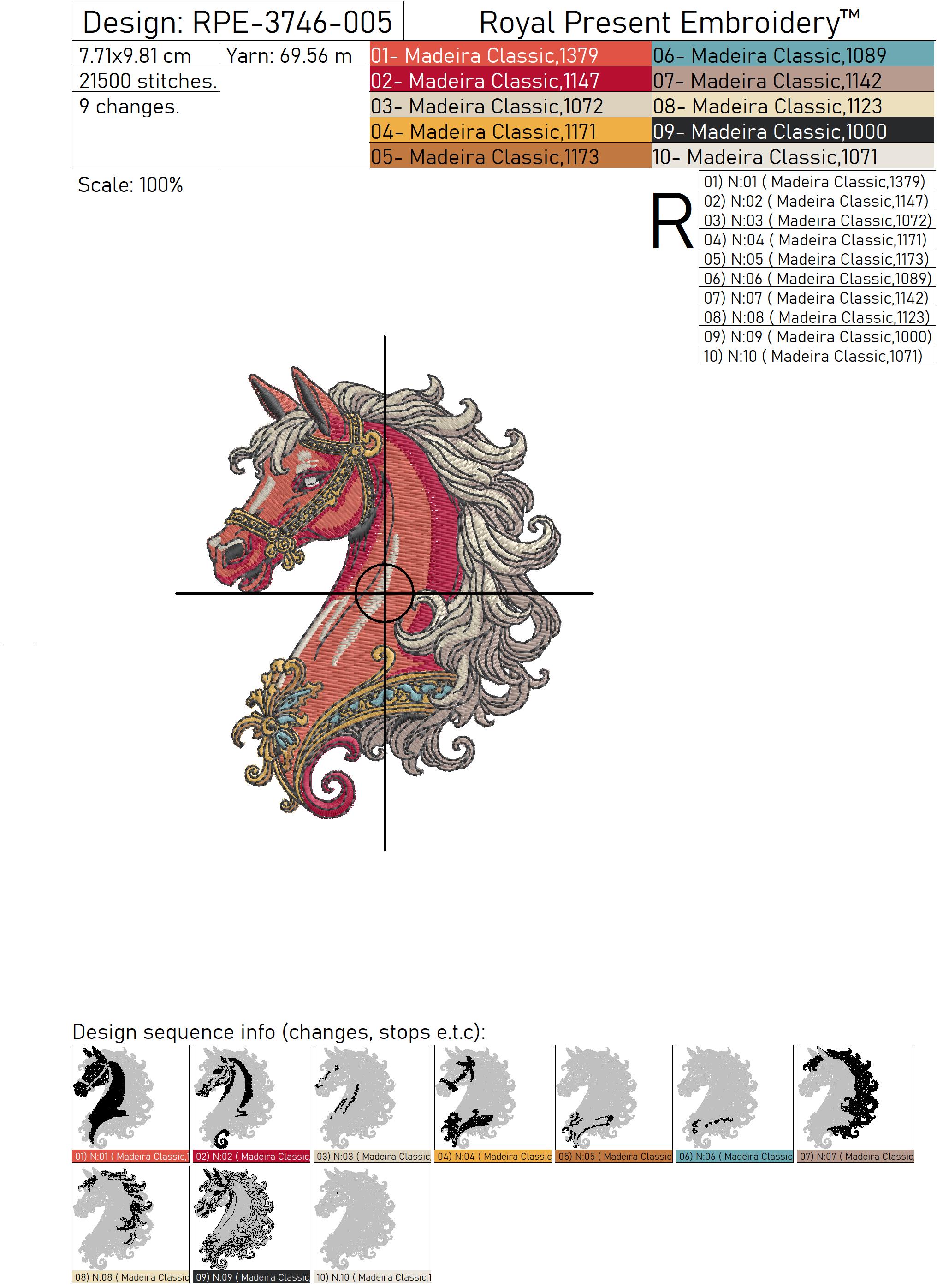 This machine embroidery design will elevate your textile project and spark fresh creativity in your craft. Choose the Baroque Red Horse Head today: a memorable statement piece ready for your next masterpiece
