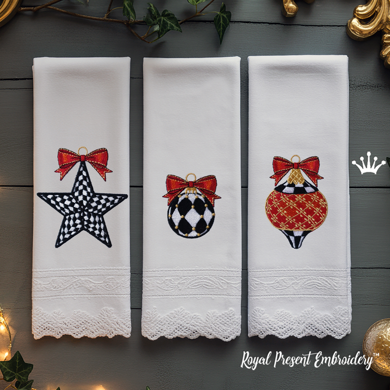 Bring festive elegance into your holiday projects with this machine embroidery design set. The checkered Christmas ornaments, decorated with delicate bows, blend timeless charm with modern style. Perfect for creating a warm, joyful Christmas atmosphere, these designs are ideal for decorating fabric embroidery projects for both home and gifts.