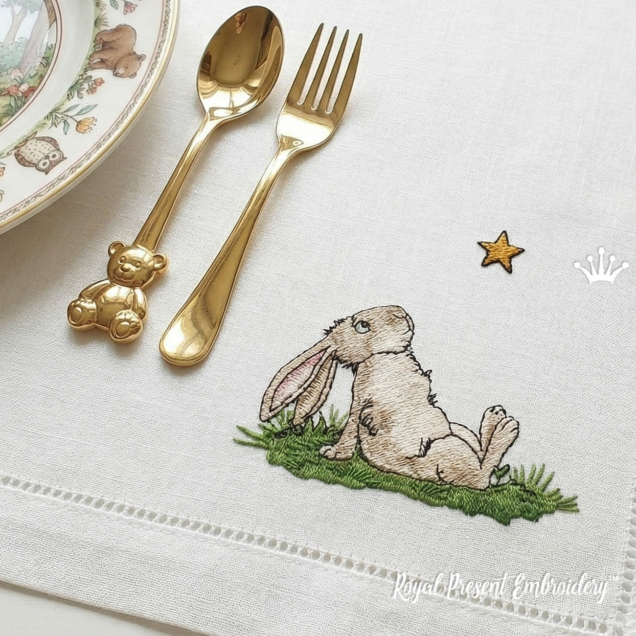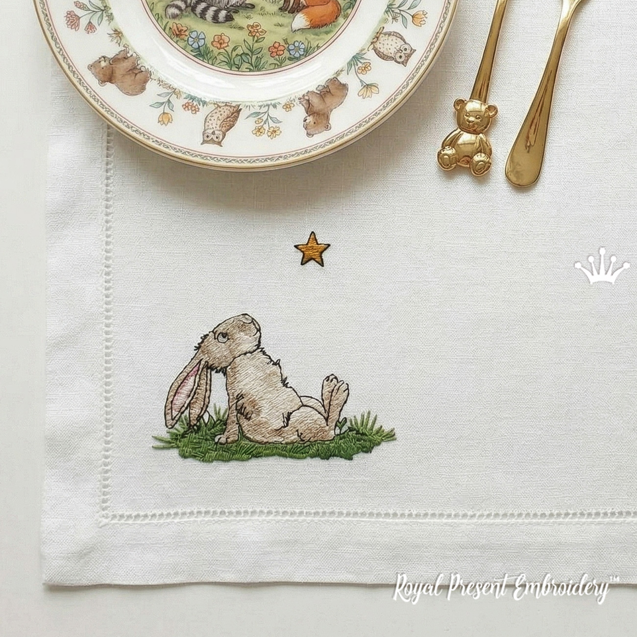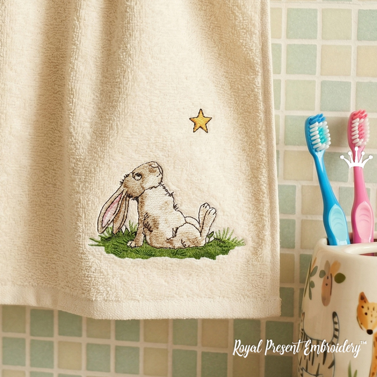Ce motif fait partie de notre collection spéciale "Histoires de lapins", une série inspirée par la vie douce et rêveuse des lapins. Chaque motif raconte sa propre petite histoire, faisant de votre broderie non pas une simple décoration, mais un morceau d'émotion et d'imagination.