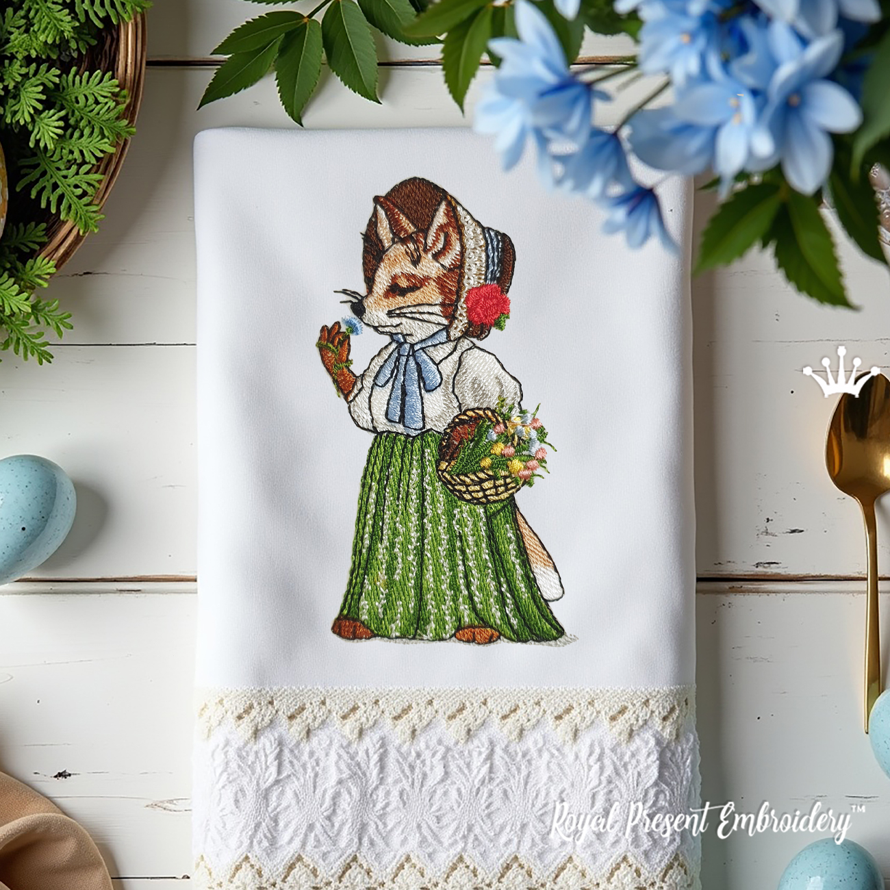 The Lady Mama Fox machine embroidery design brings elegance and charm to winter and holiday projects. Featuring a stylish fox in a dress and hat, it’s perfect for decorating kitchen towels, linen aprons, and seasonal home textiles. The design fits a 100x170 mm (approximately 4x6.7 inch) hoop, making it ideal for mid-size embroidery projects. Every stitch adds warmth and character to your festive creations.