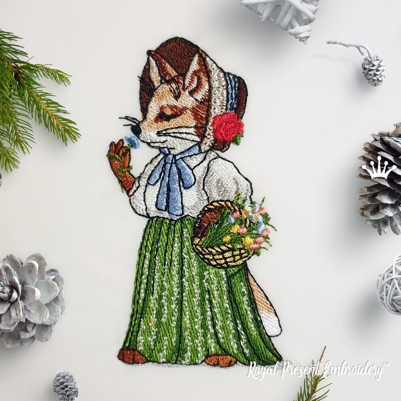 Mama Fox Lady is a charming machine embroidery design featuring an elegant fox in a dress and hat. Perfect for adding warmth and whimsy to pillows, aprons, tote bags, and children’s clothing. Fits 4x4 inch hoop. Great for woodland-themed projects or cozy home decor. Commercial license included for use on finished products.
