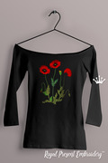 Discover the beauty of our exclusive Scarlet Poppies: Midnight Blossom Machine Embroidery Design. This stunning design captures the essence of nature's effortless beauty with its vibrant red poppies set against a sleek, black fabric. The contrast is not just striking—it's iconic.
